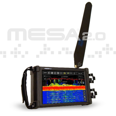 MESA 2.0 is a portable, handheld RF receiver that detects known, unknown, illegal, disruptive or interfering transmissions. MESA® 2.0 has the portability and operational features not found on other spectrum analyzers. It provides tools, specifications, and design features for locating unknown signals throughout a wide frequency range up to 6 GHz (*12 GHz with the Down Converter antenna).